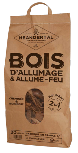 Allume feu Néandertal, 100 % naturel et écologique. Ces copeaux de bois séchés seront idéals pour allumer facilement et écologiquement votre Brasero OYAT. Sans odeur, sans fumée ni impact sur vos aliments. Un sac de 20L d'allume feu Néandertal permet une trentaine d'allumage en moyenne. Issue des souches de pins maritimes, broyées puis séchées grâce à l'énergie solaire, les allumes feu Néandertal sont une solution responsable pour chacune de vos flambées.