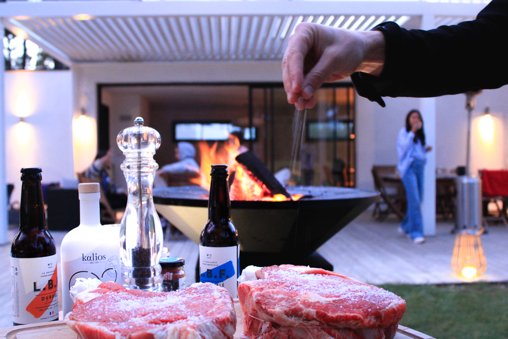 Un Brasero design et élégant, avec son foyer ouvert de 38cm de diamètre, entouré d’une plancha circulaire en acier, cuisinez viandes, poissons, fruits et légumes. Cuisson douce, ou à feu vif, sur plancha ou sur grill, vous avez le choix. L’importante surface de cuisson offre d’innombrables possibilités. Le Brasero OYAT saura vous accompagner à chaque allumage. Sa ceinture retenant les graisses, et son tiroir à cendres en font un outil pratique et agréable à utiliser. De même, l’unique pied de la grille permet un accès facile au foyer, pour raviver le feu. Nous déclinons le brasero OYAT en deux couleurs. Le noir brut, et le cognac. Ces deux teintes sauront se fondre avec élégance dans votre extérieur, qu’il soit plongé dans la nature ou bien sur votre terrasse.